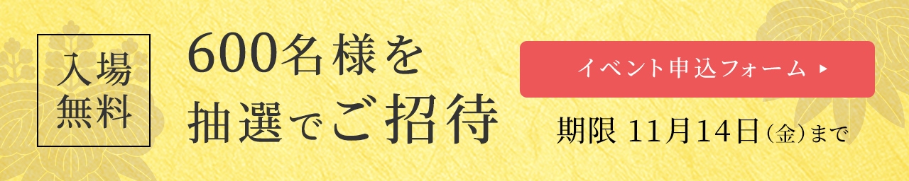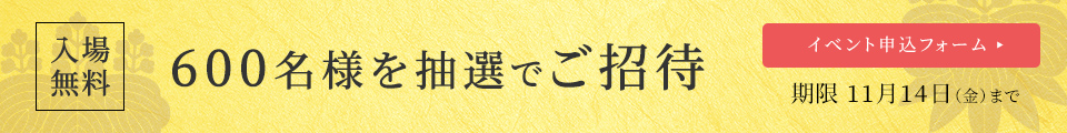 ※応募者多数の場合は抽選となります。発表は11月14日(金)の締め切り後、「参加証」の発送をもって代えさせていただきます。